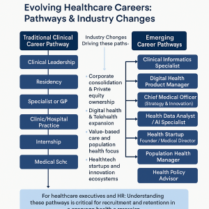 This post explores how these changes are unfolding, with examples of new job pathways, industry-wide trends, and implication for recruitment and retention in hospitals and health organisations as healthcare business models reshape health careers.